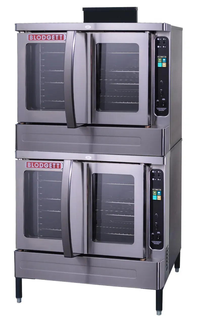 The gold standard of convection ovens! Blodgett Premium series convection ovens have the lowest cost of ownership of ANY commercial convection oven. Blodgett ovens are built with exceptional materials and craftsmanship, high energy efficiency and offer stellar service/repair records. That’s why Blodgett ovens are the industry benchmark for quality and reliability, providing decades of rigorous use in any commercial kitchen. Don’t be surprised if your Blodgett convection oven lasts more than thirty years! DFG-100-DBL is a double stack oven and includes 6” s/s legs, flue connector & stacking brackets