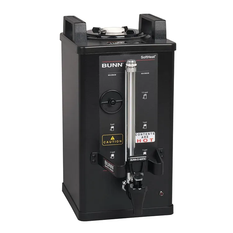 Transform your commercial restaurant with the high-quality essentials provided by Bunn. Introducing the Bunn 27850.0004 Coffee Satellite, a must-have for any bustling establishment. This portable coffee server boasts a 1.5-gallon per hour capacity, ensuring a steady supply of hot, delicious coffee for your customers. With its 30-minute setting and LED indicator, you can easily monitor and control the server's heat, guaranteeing optimal serving temperatures. The brew-through lid and top handles make it convenient to use, while its sleek black decor adds a touch of sophistication to your coffee station. Designed to fit on Single SH and Dual SH Brewers, this coffee satellite is a versatile addition to your setup. Rest assured, it is UL and NSF certified, meeting the highest standards of safety and quality. Elevate your coffee service with the Bunn 27850.0004 Coffee Satellite.