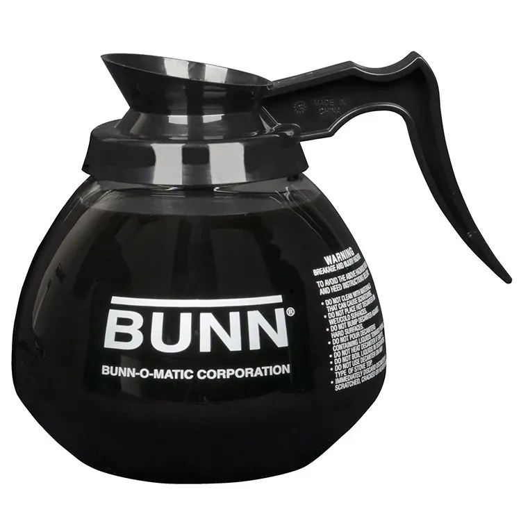 Stay ahead with competitive tools with the Bunn 42400.0024 Coffee Decanter. Designed for commercial restaurant use, this 64 oz. glass decanter is a must-have for any coffee service. The black handle provides a secure grip, ensuring safe and easy pouring. With 24 decanters per pack, you'll have plenty to keep up with demand. Whether you're running a bustling café or a busy diner, this coffee decanter is built to withstand the rigors of a commercial kitchen. Its durable construction and sleek design make it both practical and stylish. Don't settle for anything less than the best. Invest in the Bunn 42400.0024 Coffee Decanter and elevate your coffee service to new heights.