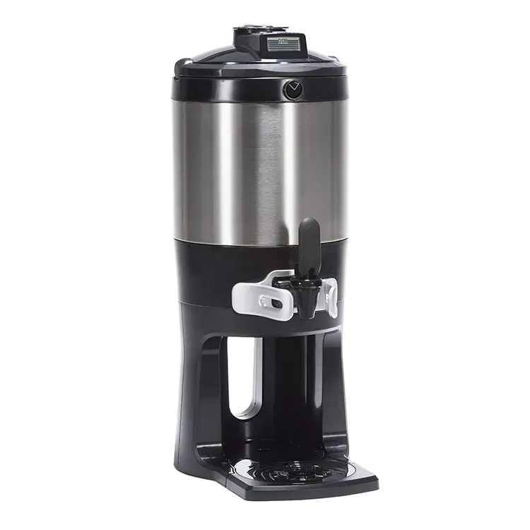Introducing the Bunn 42750.0200 Thermal Server, Brew-Thru, designed to modernize your commercial restaurant's performance. This sleek and efficient server is perfect for enhancing your beverage service. With its 1-1/2 gallon capacity, lever action dispensing, and fast flow faucet, you can easily serve large quantities of hot beverages to your customers. The battery-operated volume indicator display and 4-hour digital count-up timer ensure precise measurements and timely service. The vacuum-insulated stainless steel liner keeps your beverages hot for longer periods, while the brew-through lid allows for easy and convenient brewing. The portable design, complete with a soft-grip bail handle and aluminum faucet guard, makes it easy to transport and serve drinks wherever needed. Compatible with both twin and single Infusion Series brewers, this NSF-certified server is a must-have for any commercial restaurant looking to elevate their beverage service.
