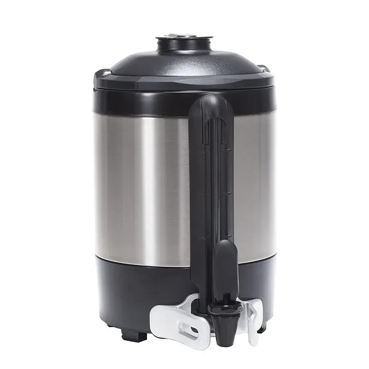 Boost functionality with quality tools like the Bunn 44050.0250 Thermal Server, Brew-Thru. Designed for commercial restaurant use, this server is a game-changer in the world of coffee service. With its 1-1/2 gallon capacity and lever action dispensing, it ensures a fast and efficient flow of hot beverages. The brew-through lid allows for easy brewing and the mechanical sight gauge lets you keep track of the liquid level. The portable design, complete with a soft-grip bail handle, makes it easy to transport and serve customers wherever they may be. The vacuum insulated stainless steel liner keeps beverages hot for longer periods, while the aluminum faucet guard adds durability. Compatible with both twin and single Infusion Series brewers, this NSF-certified server is a must-have for any commercial restaurant looking to elevate their coffee service.