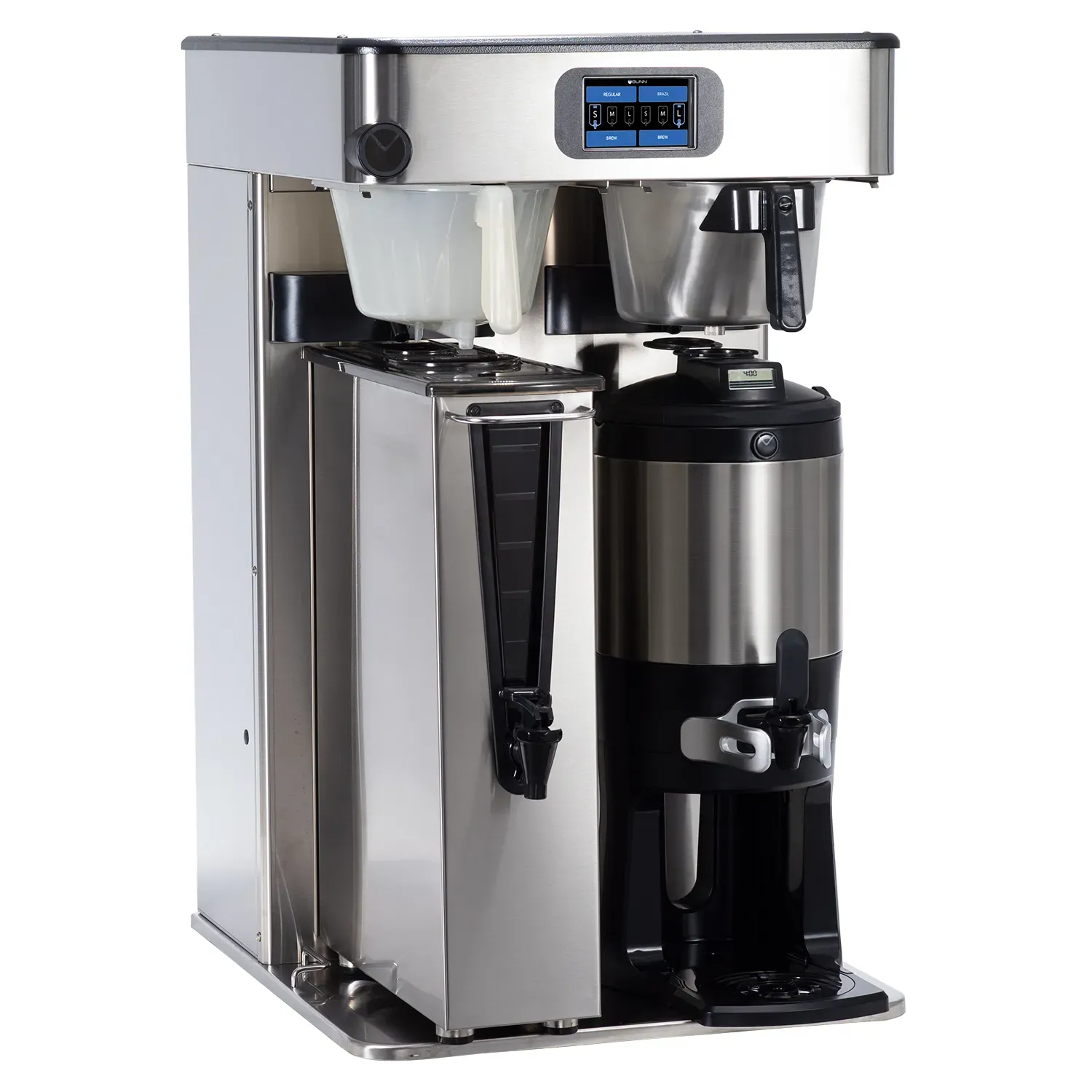 Elevate the reputation of your commercial restaurant with the Bunn 54100.0100 Coffee Tea Brewer. This high-volume brewer is designed to meet the demands of a busy restaurant environment, with a 5-1/2 gallon tank and the ability to brew coffee or tea on both sides simultaneously. The BrewWISE pre-infusion and pulse brew features ensure a rich and flavorful brew every time, while the SmartWAVE sprayhead evenly distributes water for optimal extraction. The integrated tea dilution nozzle allows for easy preparation of tea, and the 4-3/10" color touchscreen and digital temperature control provide intuitive operation. With a stainless steel finish and durable construction, this brewer is built to withstand the rigors of a commercial kitchen. Trust Bunn, a reputable vendor in the coffee tea brewer category, to deliver the quality and performance your restaurant needs.