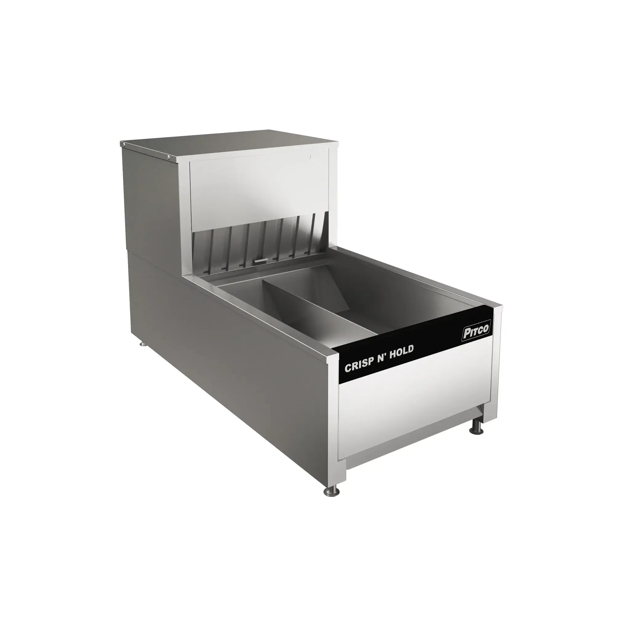 Countertop unit to hold finished products and maintain heat and texture. Removable stainless steel food grate. Pull out pan for easy cleaning.