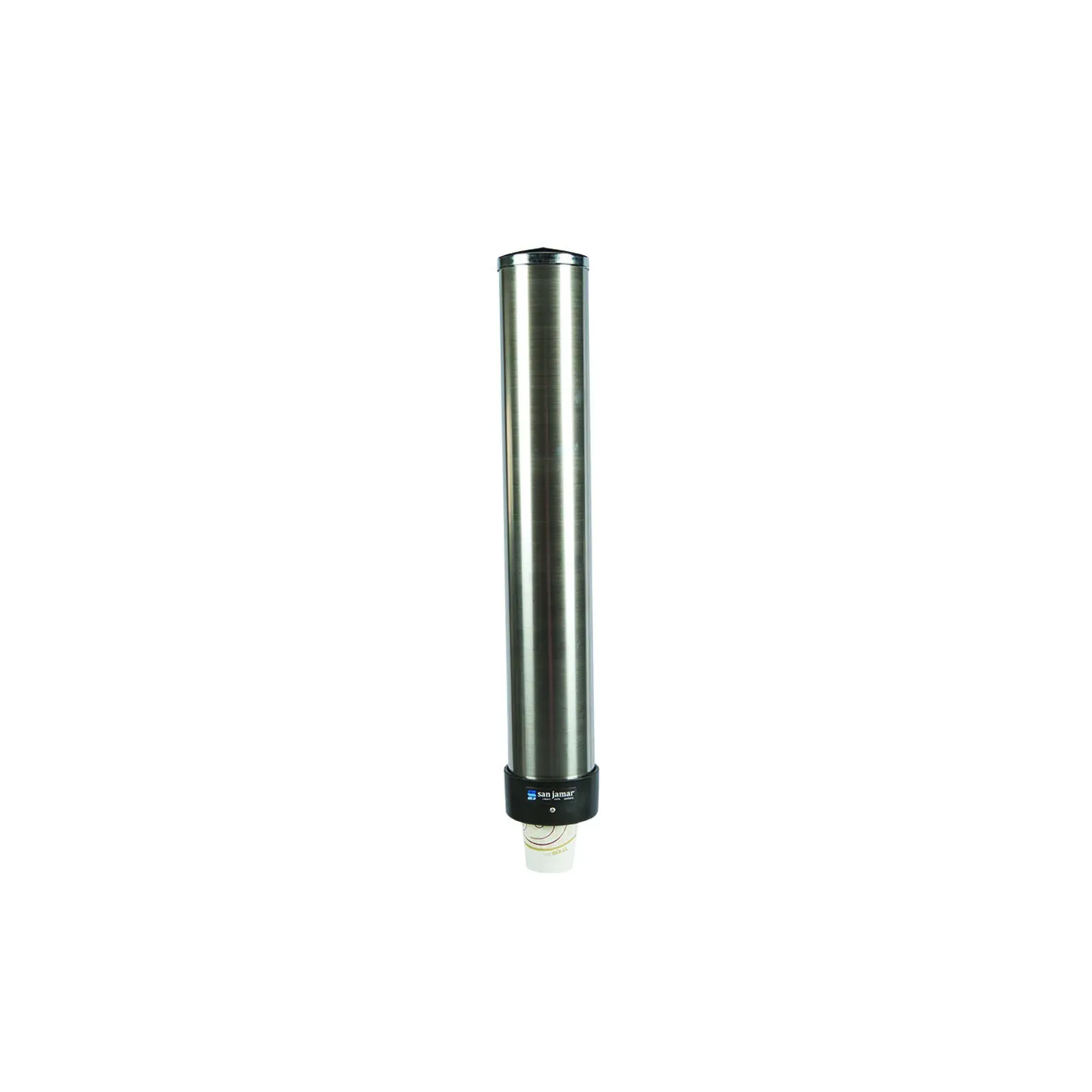 Enhance reliability with the San Jamar C3200P Cup Dispenser. Designed for commercial restaurant use, this wall-mounted dispenser ensures easy access to cups while maintaining a clean and organized space. The pull-type, top-loading design allows for quick and convenient cup retrieval, saving valuable time during busy service hours. With a 23-1/2" long tube, this dispenser accommodates 6 to 10 oz. foam, plastic, and paper cups with a rim diameter of 2-7/32" to 3-3/16". The adjustable collar conforms to cup size, providing a secure fit and preventing wastage. Made from durable 26-gauge stainless steel, this dispenser is built to withstand the demands of a commercial kitchen. Trust San Jamar, a reputable vendor in the industry, to deliver a reliable and efficient cup dispenser for your restaurant needs.