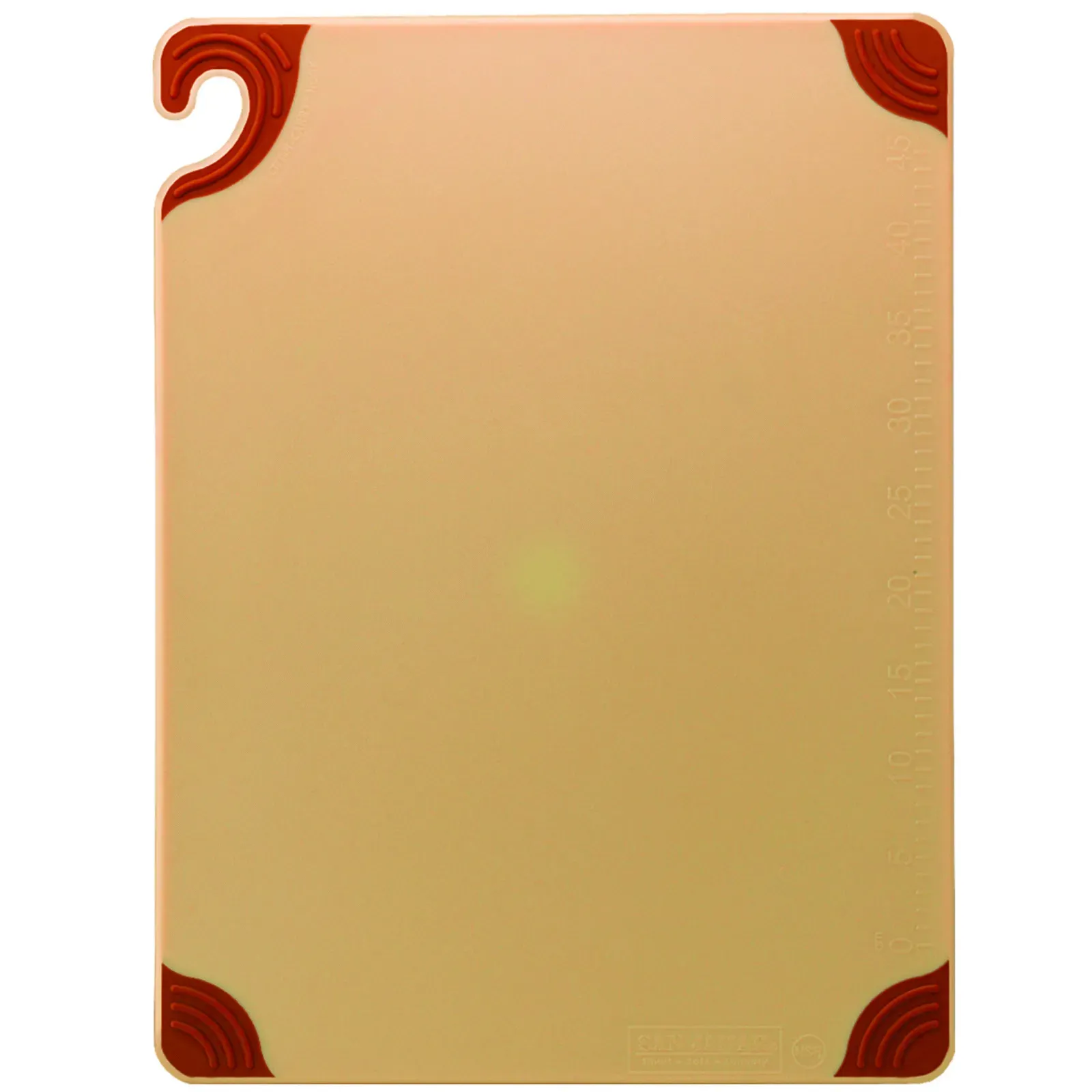 Ensure durability with the San Jamar CBG152012BR Cutting Board. Designed for commercial restaurant use, this plastic cutting board is built to withstand the demands of a busy kitchen. The anti-slip grip corners provide stability during food preparation, while the integrated ruler allows for precise measurements. With a size of 15" x 20" x 1/2", this cutting board offers ample space for chopping, slicing, and dicing ingredients. The brown color not only adds a touch of style but also helps to prevent cross-contamination by designating it for specific food types. NSF certified and dishwasher safe, this co-polymer cutting board ensures food safety and easy cleaning.