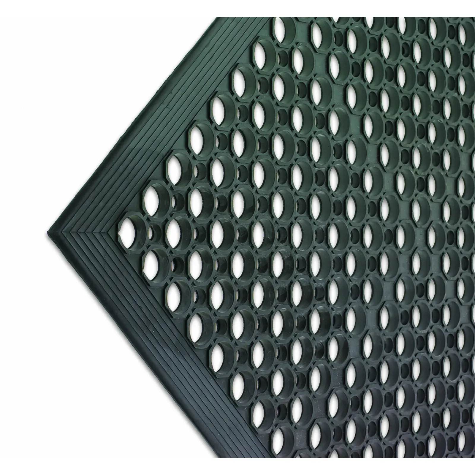 Enhance reliability with the San Jamar KM1100 Floor Mat. Designed specifically for commercial restaurant use, this anti-fatigue mat is a must-have for any busy kitchen. With its 36" x 60" size and 1/2" thickness, it provides ample coverage and cushioning to reduce fatigue and discomfort for your staff. The beveled edge ensures a smooth transition, preventing trips and falls. Made from durable rubber, this mat is not only anti-slip but also grease-resistant, making it perfect for high-traffic areas prone to spills. Each mat is priced individually and packed 25 to a carton, ensuring you have an ample supply on hand. Trust San Jamar, a reputable vendor in the industry, to deliver a high-quality product that will enhance the safety and efficiency of your restaurant.