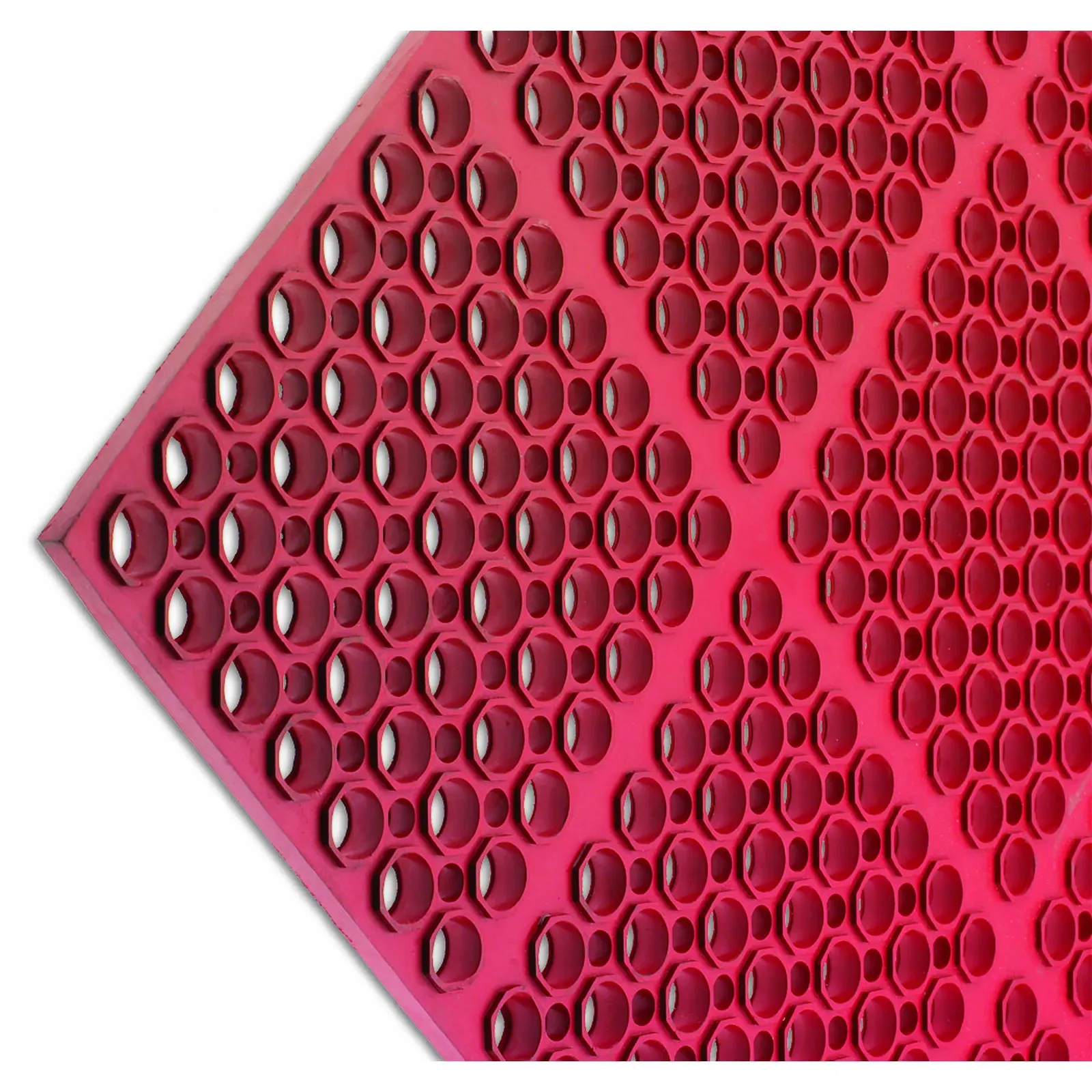Foster durability with the San Jamar KM2200B Floor Mat, Anti-Fatigue. Designed specifically for commercial restaurant use, this kitchen mat is a must-have for any busy kitchen. With its 36" x 60" size and 3/4" thickness, it provides ample coverage and support to reduce fatigue and discomfort for your staff. The bullnose edge ensures a smooth transition, preventing trips and falls. Made from high-quality rubber, this mat is not only anti-slip but also grease-proof, making it perfect for busy kitchens where spills are common. Its vibrant red color adds a pop of style to your space while also serving as a visual reminder to be cautious. With San Jamar's reputation for excellence and attention to detail, you can trust that this floor mat will withstand the demands of a commercial restaurant environment. Invest in the San Jamar KM2200B Floor Mat, Anti-Fatigue, and provide your staff with the comfort and safety they deserve.