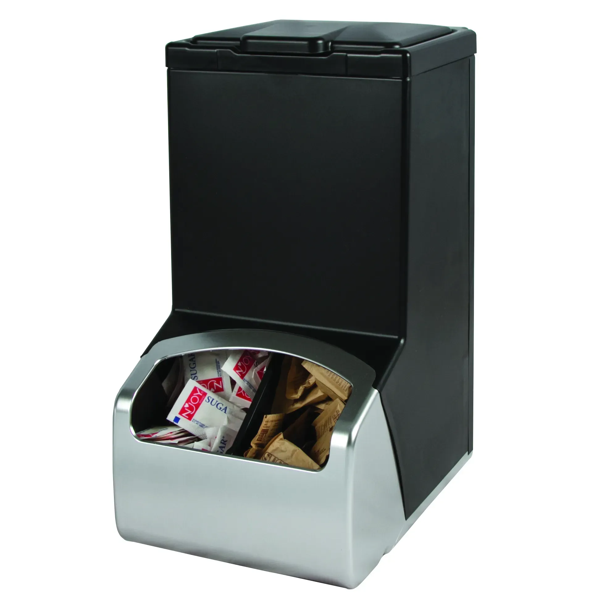 Boost convenience with the San Jamar MODBFD Condiment Caddy Countertop Organizer. This bulk dispenser is designed to streamline condiment storage and dispensing in commercial restaurant settings. With its modular, first-in first-out design, it ensures freshness and easy access to condiments. The dispenser features a top-loading, bottom-dispensing mechanism, allowing for quick and efficient refills. The removable divider allows for customizable storage options, accommodating a variety of condiment sizes. Made from high-impact plastic, this dispenser is durable and built to withstand the demands of a busy restaurant environment. The sleek black and silver design adds a touch of sophistication to any countertop. NSF certified, this condiment caddy meets the highest standards of safety and sanitation. Enhance your restaurant's efficiency and organization with the San Jamar MODBFD Condiment Caddy Countertop Organizer.