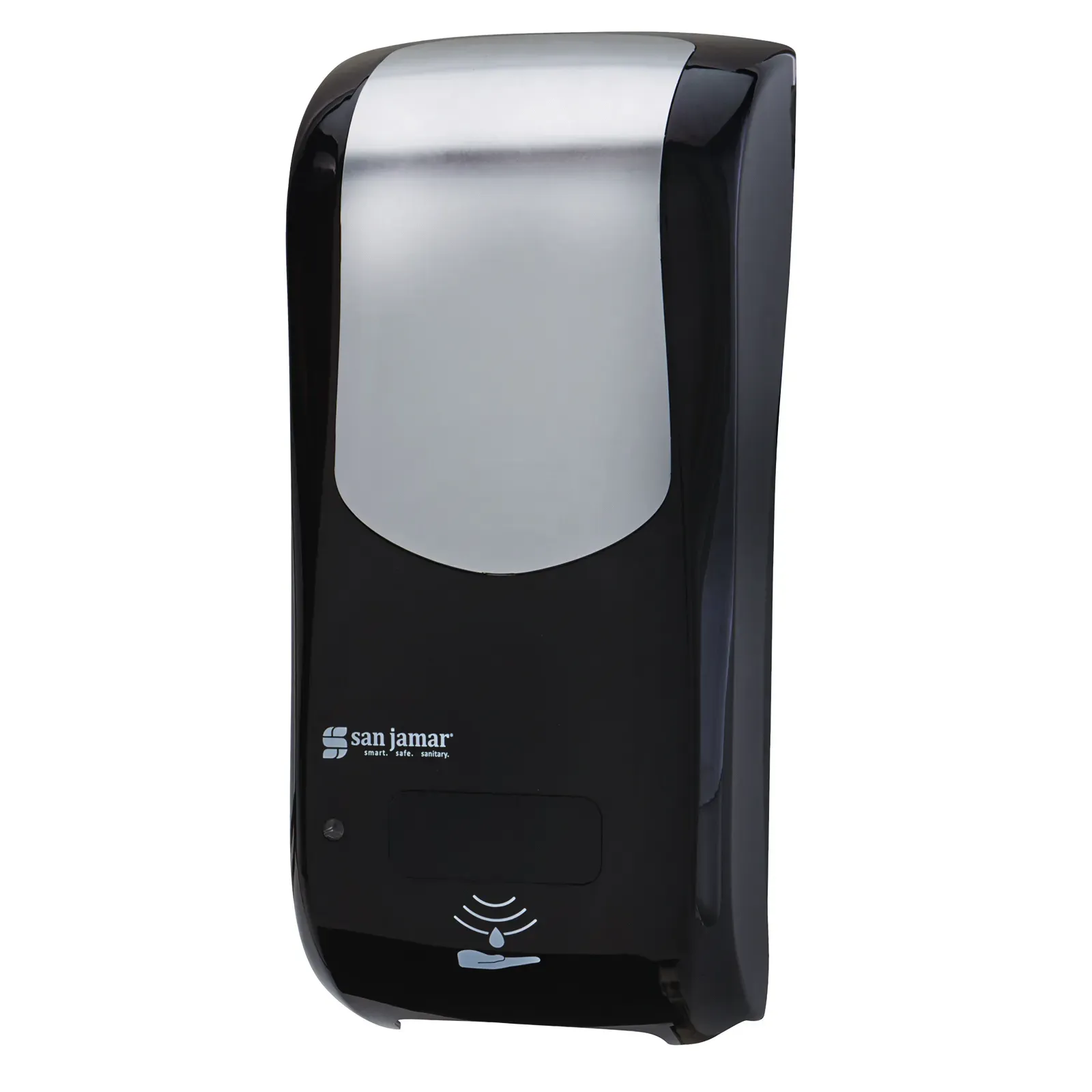 Ensure efficiency with the San Jamar SH970BKSS Hand Soap / Sanitizer Dispenser. This Summit Rely Hybrid Soap Dispenser is designed to meet the needs of commercial restaurants, providing a convenient and hygienic solution for hand hygiene. With a sleek black and stainless look, this dispenser adds a touch of sophistication to any restroom or kitchen area. Its 900 mL capacity allows for dispensing bulk liquid or lotion, as well as hand sanitizer, ensuring that your staff and customers have access to the necessary products for cleanliness. The dispenser features electronic touchless operation, promoting a hands-free experience and reducing the risk of cross-contamination. In the event of low battery power, the dispenser can be operated manually. Trust San Jamar, a reputable vendor in the industry, to deliver a reliable and durable product that meets the demands of a busy commercial restaurant environment.