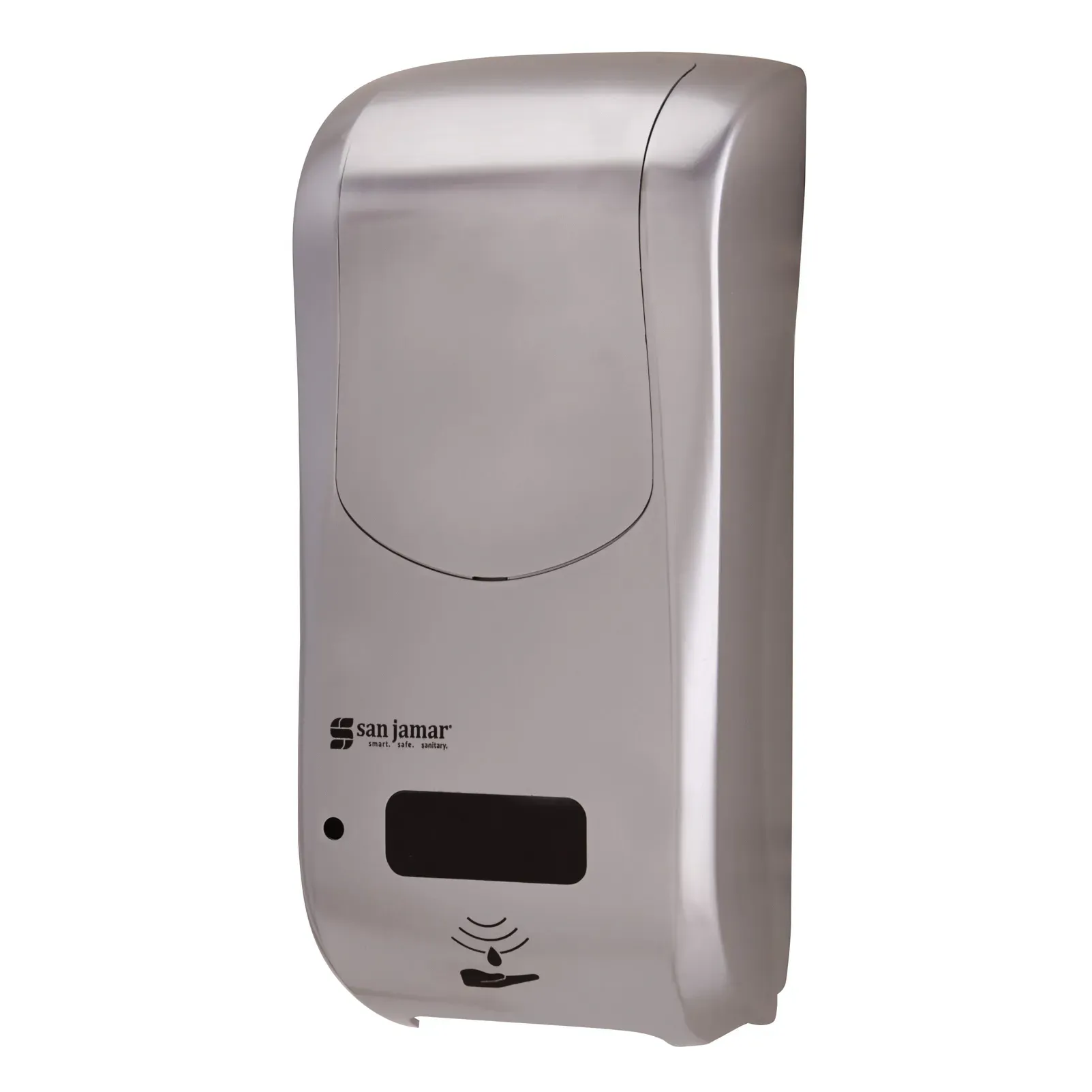 Optimize performance with the San Jamar SHF970SS Hand Soap / Sanitizer Dispenser. This stainless-look dispenser is designed to meet the needs of commercial restaurants, ensuring a hygienic environment for both staff and customers. With a 900 mL capacity, it can dispense bulk foam, providing a cost-effective solution for high-traffic areas. The electronic touchless operation promotes cleanliness and reduces the risk of cross-contamination. Even when the batteries are low, the dispenser can be operated manually, ensuring uninterrupted service. The compact size of 5-1/2"W x 4"D x 12"H allows for easy installation in tight spaces. Upgrade your hygiene standards and streamline your operations with the San Jamar SHF970SS Hand Soap / Sanitizer Dispenser.
