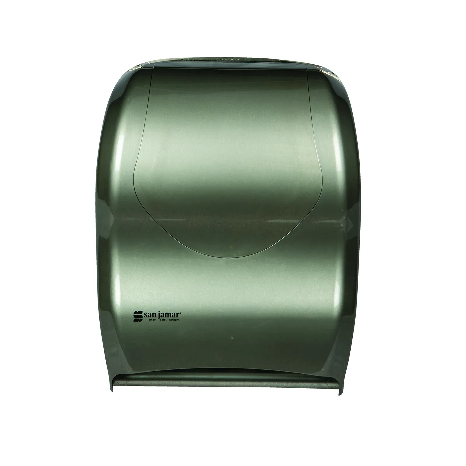 Boost convenience with the San Jamar T1470SS Paper Towel Dispenser. This smart system classic towel dispenser is designed for commercial restaurant use, providing a touch-less and hygienic solution for dispensing paper towels. With its IQ sensor and self-adjusting sensing field, it ensures accurate and efficient dispensing, reducing waste and saving you money. The dispenser can hold one 8-inch wide roll with an 8.5-inch diameter, as well as a 4-stub roll, providing a continuous supply of paper towels. It features three selectable paper lengths and dispensing delays, allowing you to customize the amount of paper dispensed. The durable break-resistant plastic construction and stainless steel-look make it both stylish and long-lasting. Whether you're running a busy kitchen or a bustling dining area, the San Jamar T1470SS Paper Towel Dispenser is the perfect addition to your commercial restaurant, enhancing convenience and hygiene for both staff and customers.