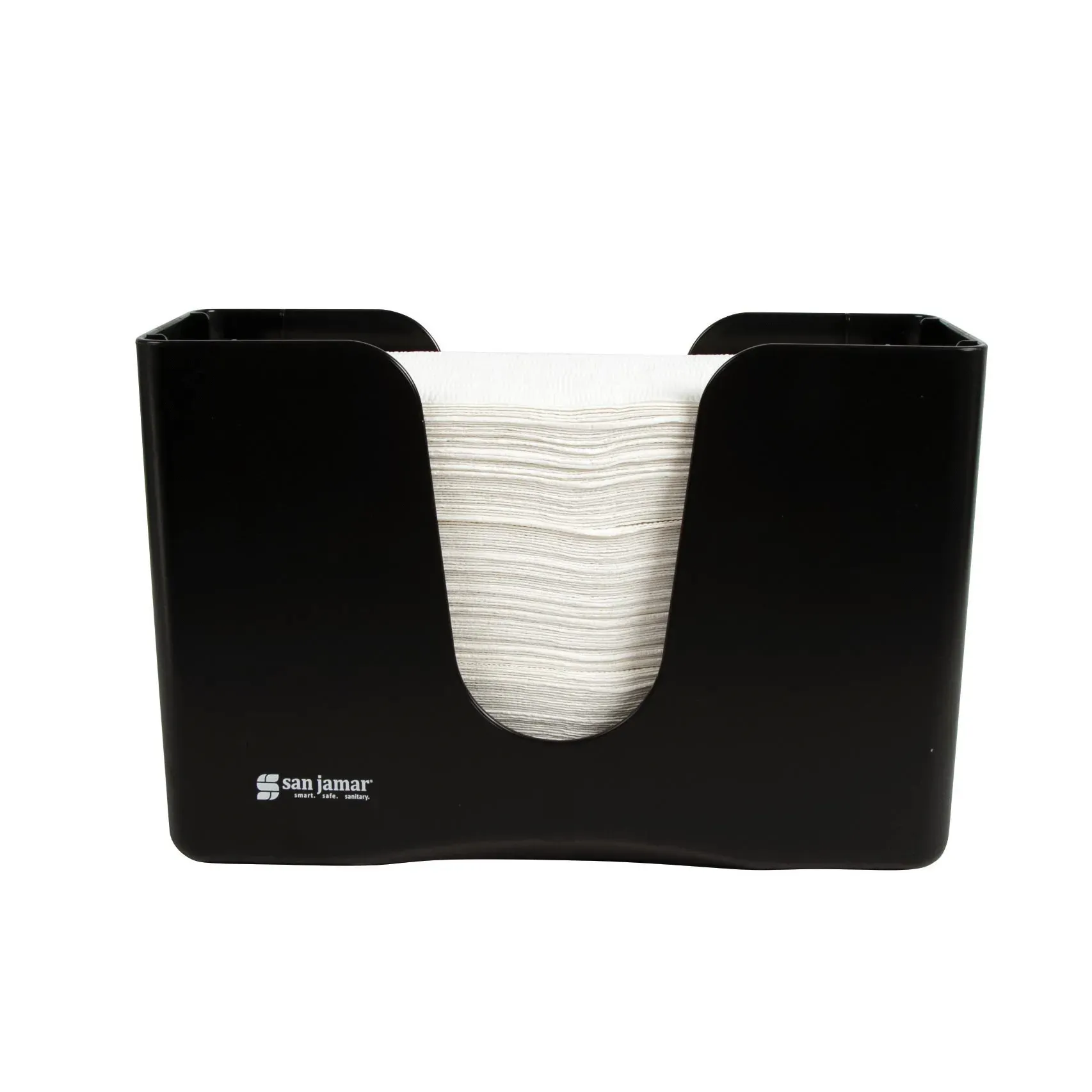 Introducing the San Jamar T1720TBK Paper Towel Dispenser, the perfect addition to any commercial restaurant setting. This compact countertop dispenser is designed to optimize functionality, ensuring that your restaurant runs smoothly and efficiently. With its sleek black plastic construction, this dispenser holds a stack of multifold, C-fold, or single-fold towels, providing easy access for your staff and customers. The dispenser's dimensions of 11-1/4"W x 5"D x 8"H make it ideal for small spaces, while its durable build ensures long-lasting use. Whether you're running a bustling kitchen or a busy dining area, this San Jamar dispenser is a must-have for maintaining cleanliness and hygiene. Trust in San Jamar, a reputable vendor in the industry, and elevate your restaurant's towel dispensing experience.