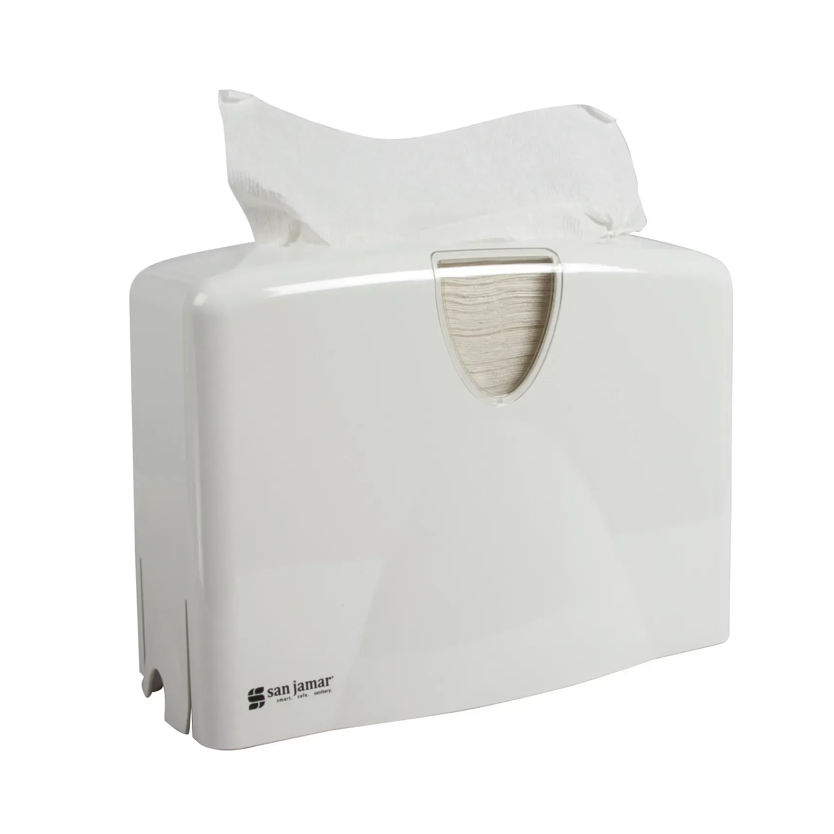 Elevate versatility with the San Jamar T1740WH Paper Towel Dispenser. Designed for commercial restaurant use, this compact dispenser is perfect for countertops, measuring 12"W x 5-1/2"D x 8-1/2"H. It can hold a stack of multifold, C-fold, or single-fold towels, making it suitable for various types of paper towels commonly used in restaurants. Made from impact-resistant plastic, this dispenser is built to withstand the demands of a busy kitchen environment. Its white color adds a clean and professional look to any space. With a capacity to hold 1.5 stacks of C-fold and multifold towels, this dispenser ensures a steady supply of paper towels for your staff and customers. Trust San Jamar, a reputable vendor in the industry, to provide you with a reliable and durable paper towel dispenser that meets your restaurant's needs.