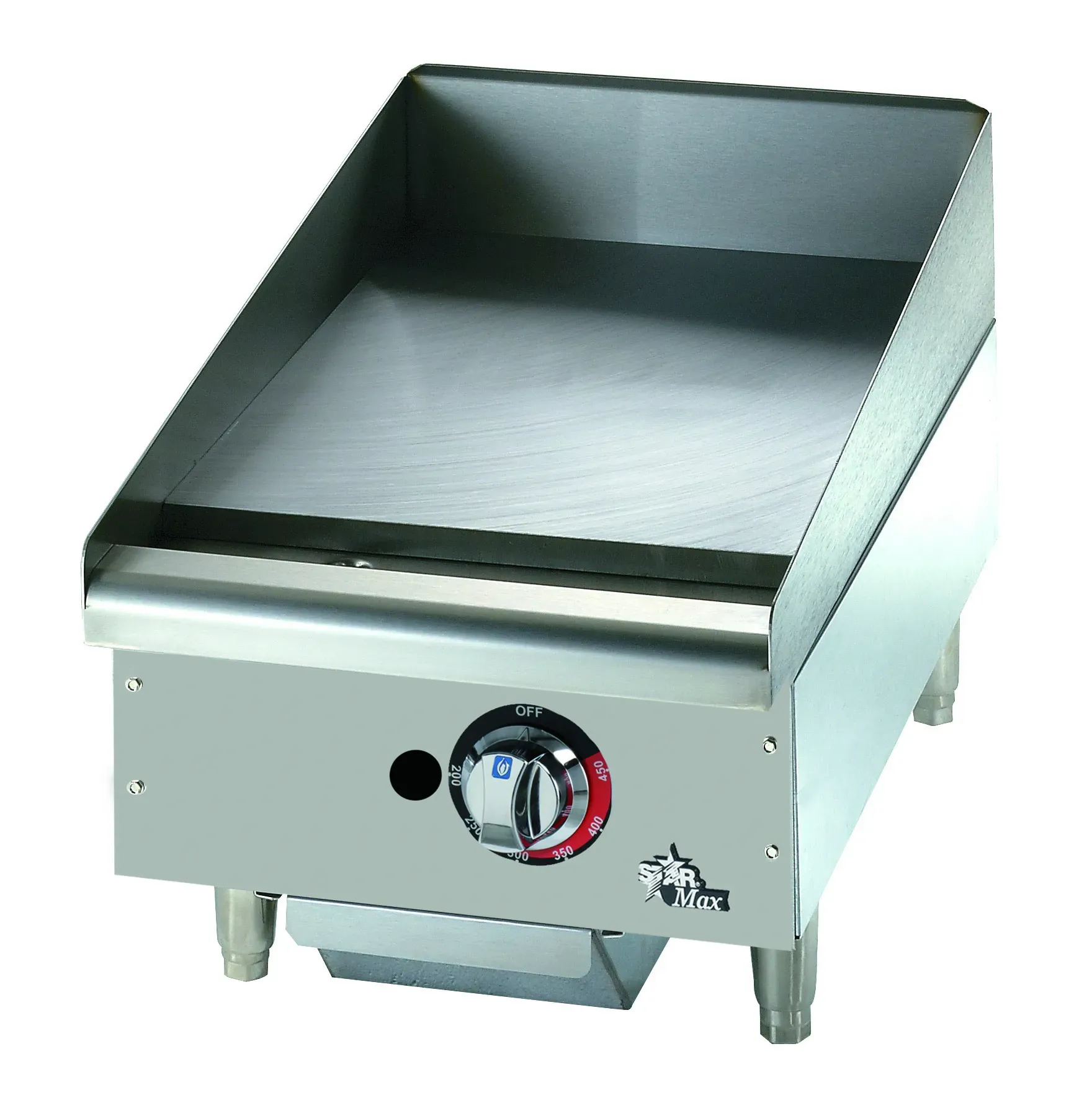 Star-Max® electric griddles provide precise temperature control and are a perfect addition to any food service operation. Electric griddles are constructed with quality and durability in mind. Polished steel or chrome plate options available. Available in 15”, 24”, 36” and 48” widths. Snap-action thermostat adjusts from 150° to 450°F.