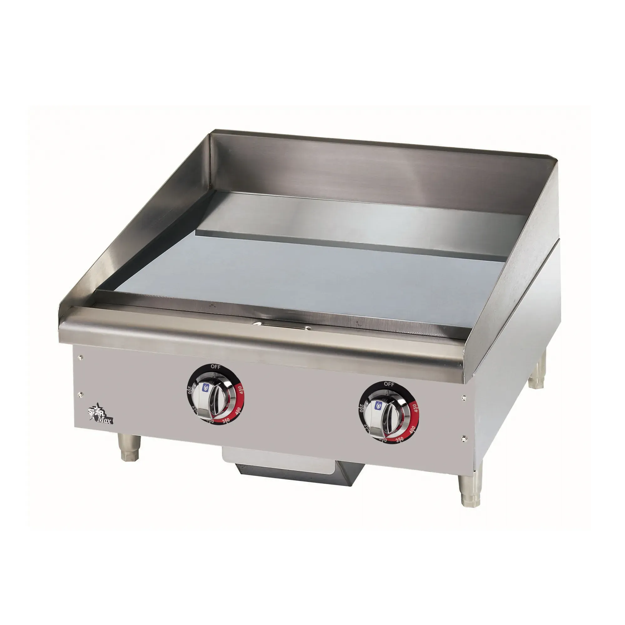 Introducing the Star, 524CHSF, Griddle, Electric, Countertop - the perfect addition to drive restaurant profitability. This heavy-duty griddle from Star is designed to meet the demands of a commercial restaurant kitchen. With a 24" W x 20-3/4" D cooking surface and a 1" thick chrome griddle plate, it provides ample space for cooking a variety of dishes. The 150-450F snap-action thermostat and 4000 watt element every 12" ensure precise temperature control and even heat distribution. The welded steel frame with a stainless steel top and front, along with aluminized steel sides, ensures durability and easy cleaning. The splash guard and grease trough help to maintain a clean and safe cooking environment. The chrome metal knobs and grease drawer add convenience to the cooking process. With its cULus, UL EPH Classified, and CSA certifications, this griddle is a reliable and safe choice for any commercial kitchen. Invest in the Star, 524CHSF, Griddle, Electric, Countertop and elevate your restaurant's cooking capabilities.