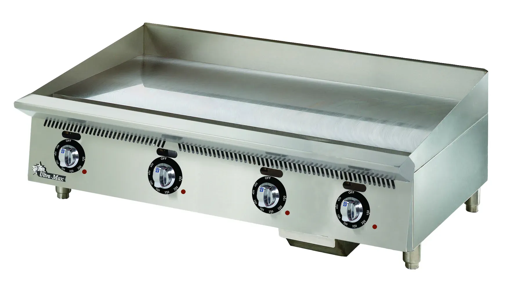 Ultra-Max® electric griddles are designed to be reliable, efficient, and accurate. Each twelve inch section has its own independent temperature control and the griddle surface is one inch thick, providing even cooking of a variety of products at the same time. Widths available in 24", 36", 48", 60" and 72".