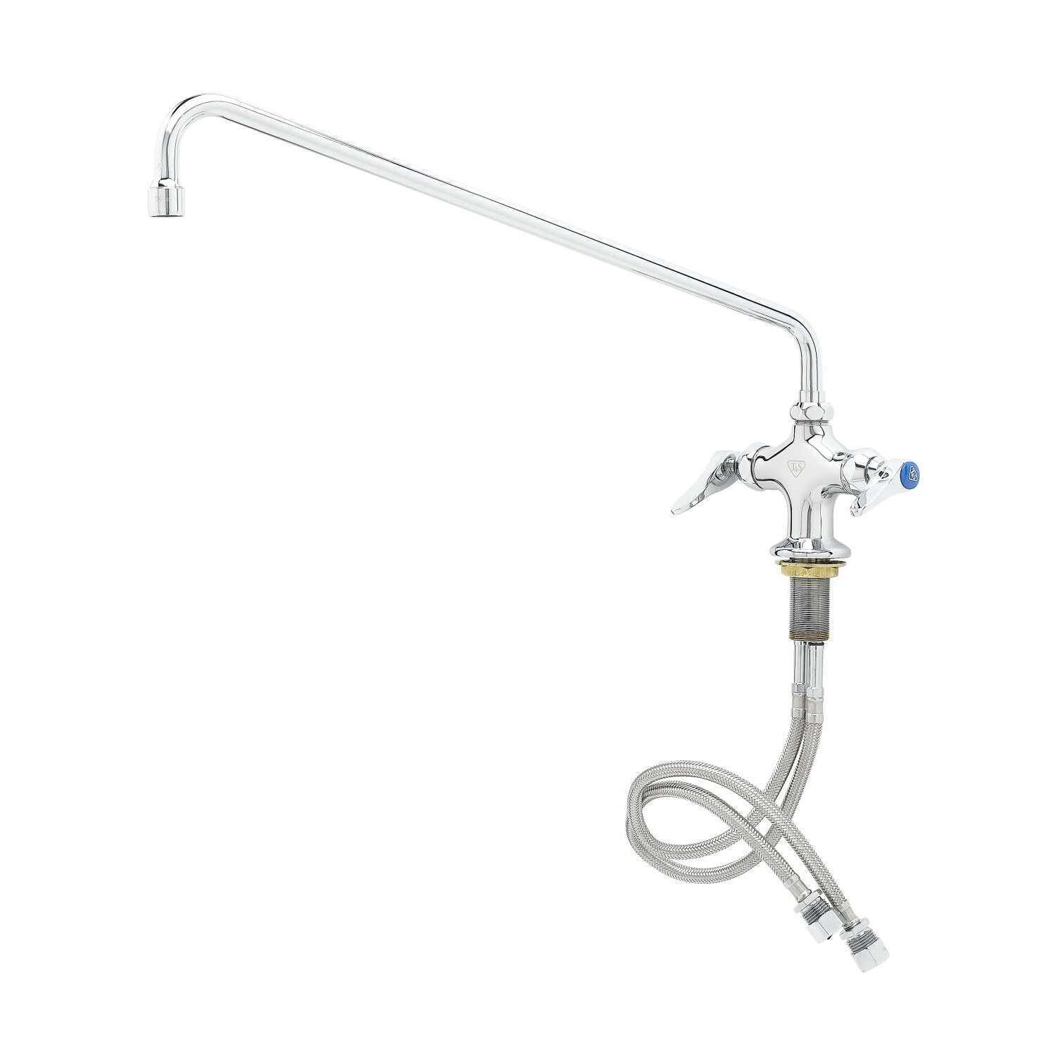 Maintain Operational Safety with the T&S Brass B-0200 Pantry Faucet. Designed specifically for commercial restaurant use, this faucet ensures reliable performance and operational safety in any kitchen setting. The single hole base and 18" swing nozzle provide flexibility and convenience, allowing for easy maneuverability and efficient workflow. The polished chrome plated brass body not only adds a sleek and professional look to your kitchen but also ensures durability and longevity. With a lock washer provided for rigid application, you can trust that this faucet will stay securely in place, even during heavy use. Whether you're washing dishes, filling pots, or rinsing produce, the T&S Brass B-0200 Pantry Faucet is the perfect choice for maintaining a safe and efficient kitchen operation. Trust in T&S Brass, a reputable vendor known for their high-quality and reliable products.