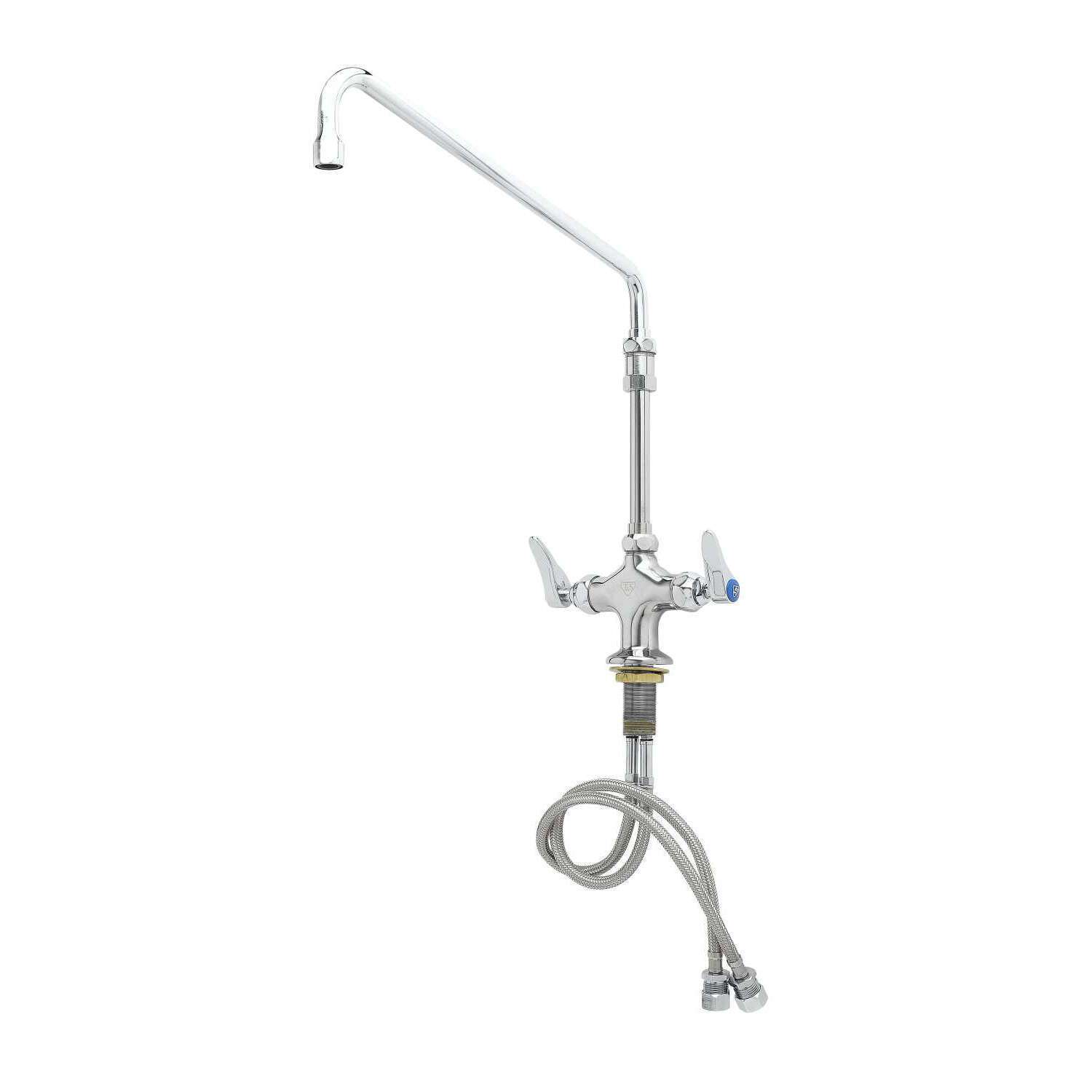 Enhance Equipment Quality with the T&S Brass, B-2294, Faucet, Pantry. This double pantry faucet is designed to elevate your restaurant's functionality and efficiency. With its single hole base and 14" elevated swing nozzle, this faucet provides easy access to water for all your kitchen needs. The polished chrome plated brass body ensures durability and longevity, even in a high-volume commercial restaurant setting. The stream regulator outlet allows for precise control of water flow, while the Series 1 design ensures optimal performance. Whether you're washing dishes, filling pots, or rinsing produce, this T&S Brass faucet delivers exceptional performance every time. Trust T&S Brass to enhance the quality and efficiency of your commercial kitchen.