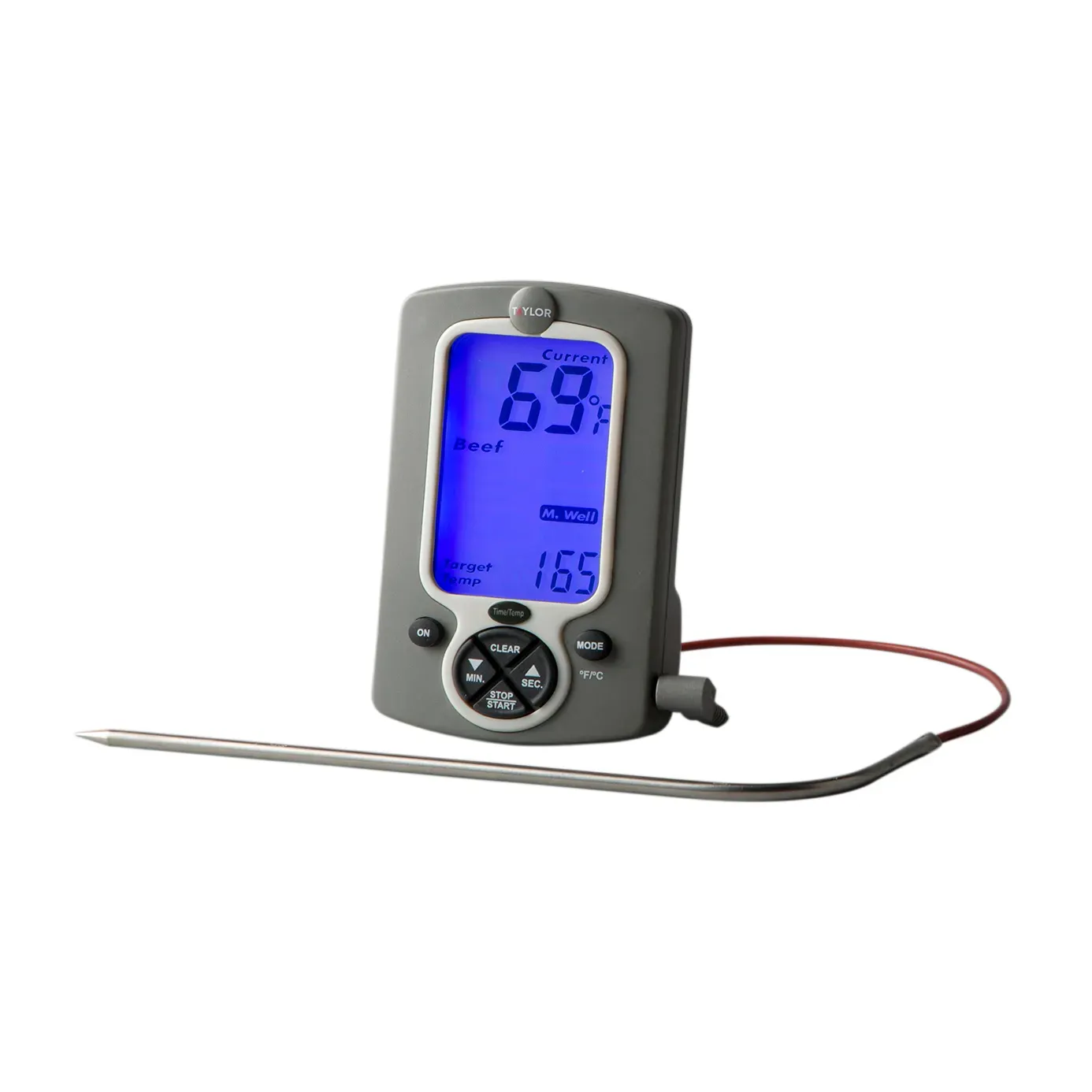 Innovate for results with the Taylor Precision 1471N Thermometer, Misc. This digital oven thermometer is a must-have for commercial restaurants. With its stainless steel probe and 4' silicone cord, it allows for easy and accurate temperature monitoring while keeping your hands safe from heat. The thermometer has a temperature range of 32 to 392°F (0 to 200°C) and a timer that can be set for up to 99 minutes and 59 seconds. It is preset with USDA cooking temperatures, but can also be customized to any temperature you desire. The blue LCD backlight ensures easy reading even in low light conditions. NSF certified, this thermometer meets the highest standards of quality and safety. It comes with (2) AAA batteries included and is packed by Taylor Precision. Upgrade your kitchen with the Taylor Precision 1471N Thermometer, Misc and take your cooking to the next level.