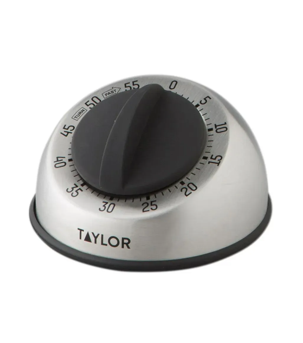 Innovate measurements with the Taylor Precision 5830 Manual Timer. Designed specifically for commercial restaurant use, this mechanical timer is a must-have tool for precise cooking and baking. With its 5" stainless steel construction, it is built to withstand the demands of a busy kitchen. The rubberized knob ensures easy and accurate time setting, while the slip-proof base keeps it securely in place during use. The 60-minute timer features a unique 9-second ring, providing an audible alert that can be heard even in a bustling restaurant environment. Trust Taylor Precision, a reputable vendor known for their high-quality products. Upgrade your kitchen with the Taylor Precision 5830 Manual Timer and experience enhanced efficiency and precision in your cooking processes.