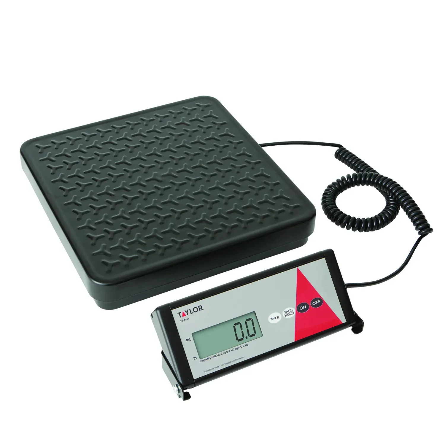 Enhance kitchen precision with the Taylor Precision TE400 Scale. Designed specifically for commercial restaurant use, this digital receiving scale offers a capacity of 400 lbs x 0.5 lb (180 kg x 0.2 kg), ensuring accurate measurements for all your culinary needs. The painted removable steel tread plate platform provides a sturdy and durable surface, while the tare, hold, and recalibration features allow for easy and efficient use. The 1" LCD remote display with a 6 ft. coiled cord and mounting bracket ensures clear visibility and convenient placement. With dual power capacity and non-skid feet, this compact and low-profile scale is perfect for any kitchen space. Whether you're weighing ingredients, portioning meals, or measuring inventory, the Taylor Precision TE400 Scale is the ideal tool for maintaining precision and efficiency in your commercial restaurant.