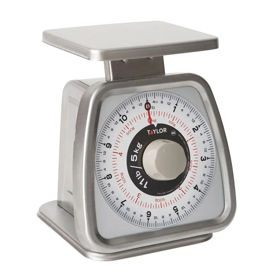 Introducing the Taylor Precision TS10 Scale, Portion, Dial, designed to optimize operations in commercial restaurants. With a rugged stainless steel construction and shatterproof lens, this scale is built to withstand the demands of a busy kitchen. Its dual measure capability allows for precise portion control, with an 11lb x 1oz / 5kg x 50g capacity. The angled, rotating dial and bold graphics ensure easy readability, even in fast-paced environments. The 6" x 5-1/4" removable platform provides versatility and convenience. NSF certified, this scale meets the highest standards of safety and sanitation. Whether you're measuring ingredients for recipes or portioning meals for customers, the Taylor Precision TS10 Scale is a reliable and accurate tool. Trust in its durability, accuracy, and user-friendly design to streamline your restaurant operations and deliver consistent results.