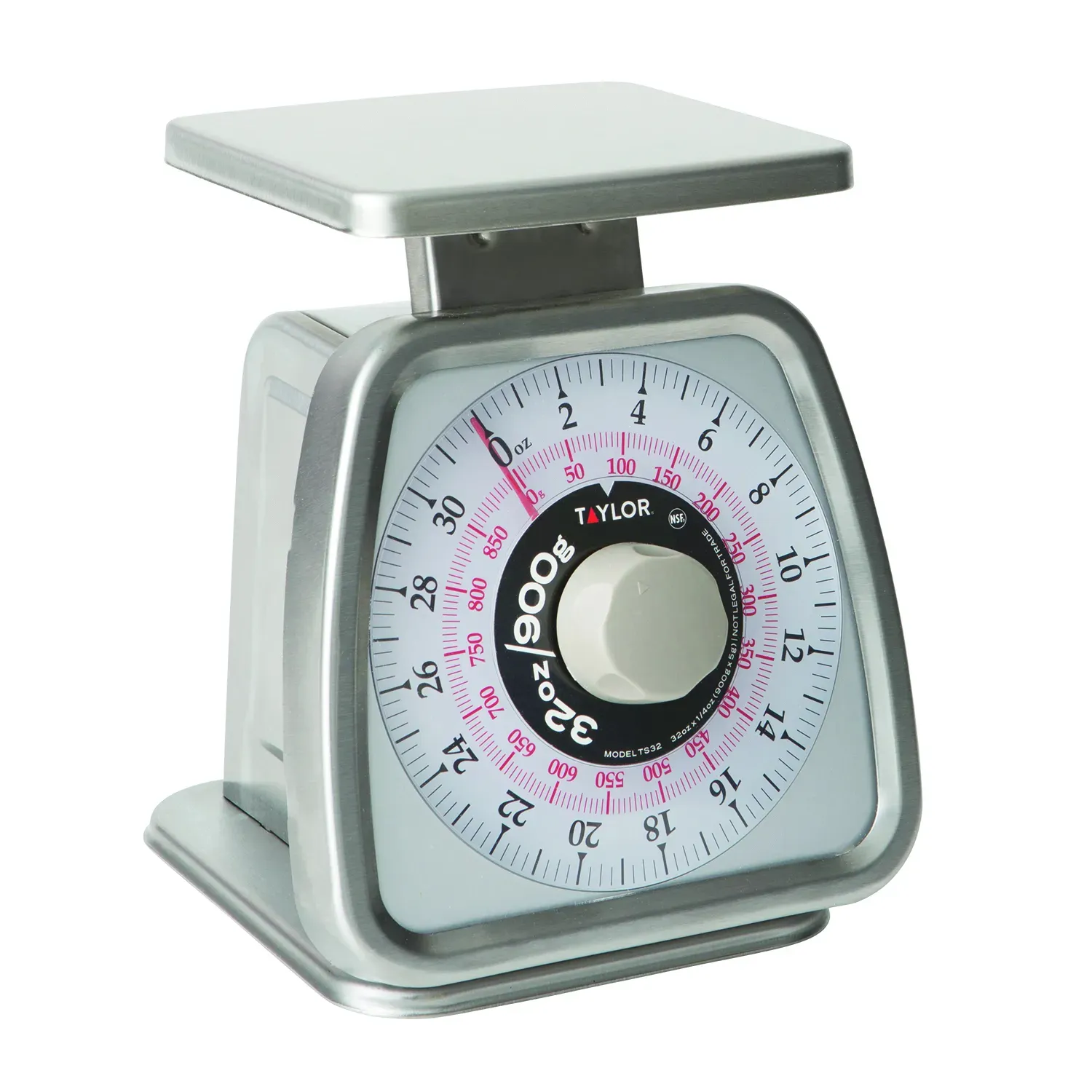 Elevate accuracy with the Taylor Precision TS32 Scale, Portion, Dial. Designed specifically for commercial restaurant use, this portion control scale ensures precise measurements every time. With a capacity of 32oz x 1/4oz (900g x 5g), it allows for accurate portioning of ingredients, helping to maintain consistency in recipes and control costs. The angled, rotating dial and bold graphics make it easy to read measurements quickly, even in a busy kitchen environment. The shatterproof lens and stainless steel construction ensure durability and longevity, while the removable platform allows for easy cleaning. NSF certified, this scale meets the highest standards of food safety and sanitation. Whether you're a professional chef or a restaurant owner, the Taylor Precision TS32 Scale, Portion, Dial is an essential tool for precise portion control and accurate measurements in any commercial kitchen.
