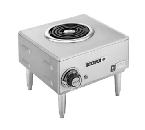 Wells H-33 electric countertop hot plate is designed to be dependable and easy to use. This unit is a versatile solution for all sorts of operations, big or small, and take up minimal counter space. This hot plate is a simple way to add reliable cooking power to your kitchen. Constructed with a steel body and single 6" diameter self-cleaning spiral top, 4" plastic legs, 120V, and a cord set.